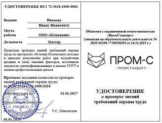 Итоговый документ: Протокол проверки знания требований охраны труда Соответствует Постановлению Правительства РФ от 24.12.2021 №2464, реестровый номер МинТруд, удостоверение